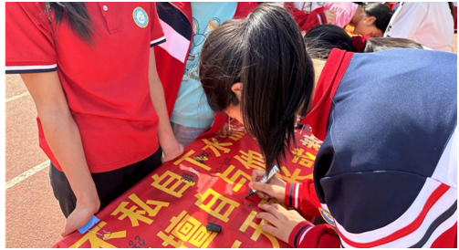 此次防溺水签字仪式,使每个学生深刻认识到生命的可贵,增强了防溺水意识,有力推动了我校防溺水安全工作的开展。全体师生依次走到横幅前,郑重地写下自己的名字。笔迹落下的是名字,扛起的是责任,传递的是“安全第一,珍爱生命,预防溺水,从我做起”的共识。