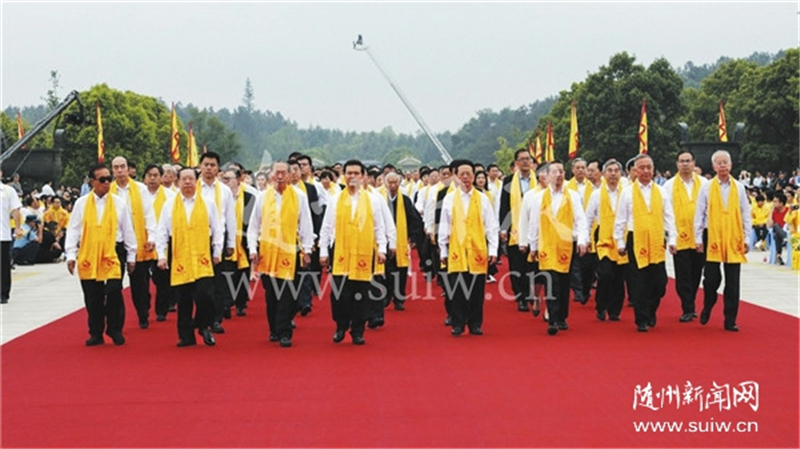 中国国民党前副主席陈镇湘,中共湖北省委书记、省人大常委会主任蒋超良,中共湖北省委副书记、省长王晓东,湖北省政协主席徐立全,泰国前国会主席蔡邬泰,全国人大常委、中国文联副主席左中一,中国文联原副主席仲呈祥,全国人大预算工作委员会原副主任苏军,海峡两岸关系协会副会长孙亚夫,中华全国归国华侨联合会副主席齐全胜,中华炎黄文化研究会常务副会长、武警政治部原副主任张补旺,湖北省人大常委会党组书记、常务副主任王玲,中共湖北省委常委、省人民政府常务副省长黄楚平,中共湖北省委常委、省委秘书长梁伟年,湖北省政协副主席马旭明,资深外交家安文彬,陕西省十届政协副主席、黄帝陵基金会理事长王晓安,中华炎黄文化研究会常务副会长常文光,美国洛杉矶社区学院董事会主席方树强,美国加利福尼亚州米尔布雷市市长李伟忠,改革先锋茅永红,全国劳动模范王涛,中共随州市委书记、市人大常委会主任陈瑞峰,中共随州市委副书记、市长郭永红等出席大典。
