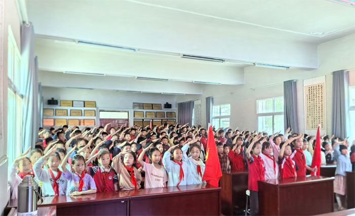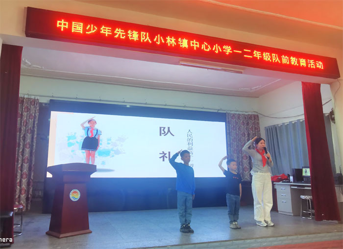 大队委还对正确红领巾佩戴、敬队礼、宣誓等内容进行了深入细致地讲解和示范。