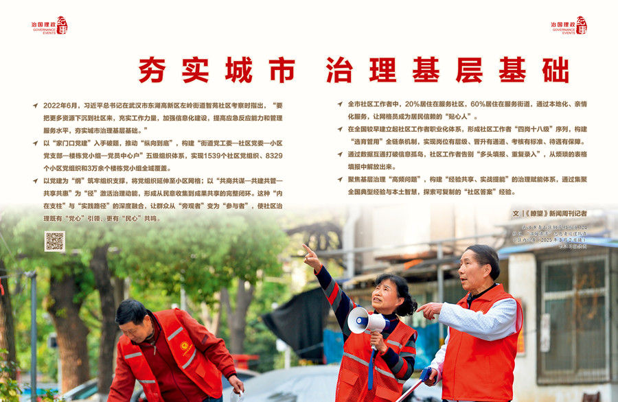 做“加法”强基赋能。武汉从顶层设计破题,在社区工作者队伍建设上实施“强基赋能”工程,通过职业化体系构建、编制扩容、待遇提升等组合拳,打造高素质基层治理骨干力量。