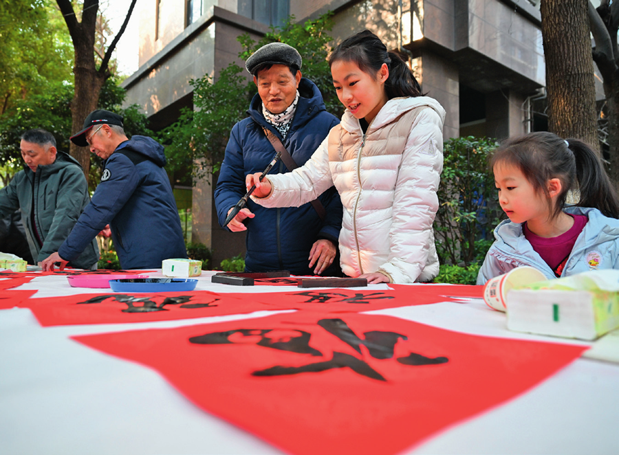 一场社区庙会在中国能建城市发展公司武汉城市花园小区举行,居民 在家门口参与传统游艺、写春联、赶大集等活动( 2025 年 1 月 19 日摄) 程敏摄 / 本刊