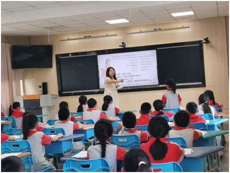 在语文课堂上,陈老师以独特的教学视角,结合小学生认知特点,通过生动有趣的AI引入课题,巧妙设置互动环节,引导学生走进丰子恺先生的《手指》一文,沉浸式阅读,深入思考、积极发言。学生课堂氛围活跃,学生们专注的眼神和踊跃的表现,展现出对知识的渴望。