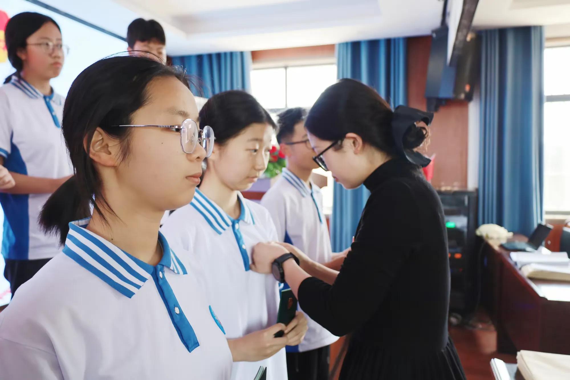 入团仪式在庄严的国歌声中拉开帷幕。主持人宣读2025年春季新团员名单,一批品学兼优、积极向上的优秀学子光荣地加入了中国共产主义青年团。在激昂的《光荣啊,中国共青团》伴奏声中,团委为新团员颁发团员证、佩戴团徽。