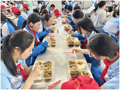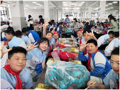 中午时分,师生共赴食堂就餐,整洁的环境、丰富的菜品和有序的用餐流程,让六年级学生感受“舌尖上的文帝温度”。餐桌上,两校学生热情交流,分享见闻,在烟火气息中拉近了距离。