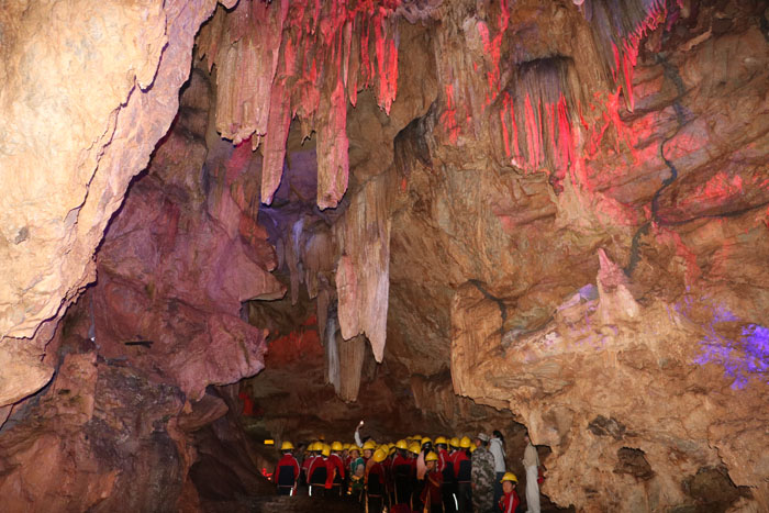 4月28日,镇中心学校组织全镇小学师生近400人踏上大洪山研学之旅,清晨,师生走进大洪山双王洞。五彩灯光勾勒出钟乳石的奇崛轮廓,石笋如破土玉柱,石幔似流瀑悬垂。在大洪山革命历史馆,泛黄的文献、斑驳的枪炮展品,重现了先烈们的斗争历程。讲解员讲述李先念等革命先辈在此建立根据地的故事,同学们驻足凝视历史照片,在聆听中感悟 “大洪山精神” 的厚重内涵,纷纷表示要传承红色基因。