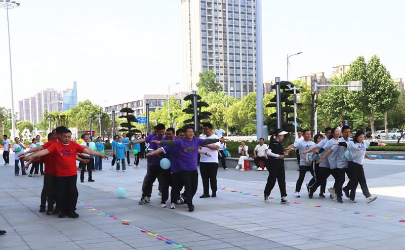 接下来是“趣味背夹球”比赛。参赛队伍的每个队员中间夹住一个气球,要求在不使用手的情况下,协同前行。比赛开始后,选手们在场地上摇摇晃晃,场面既搞笑又温馨,展现了团队的默契与欢乐。