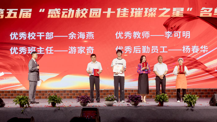 活动最后,校领导为荣获“校园十佳璀璨之星”的师生颁发荣誉证书。晚会在全体师生激昂合唱《歌唱祖国》的旋律中圆满落幕。大家用饱满的热情和嘹亮的歌声,抒发了对未来的美好憧憬,展现出勇往直前、积极向上的精神风貌,寓意着全体学子们将以坚定的信念和无畏的勇气,在新时代的征程中逐梦前行。