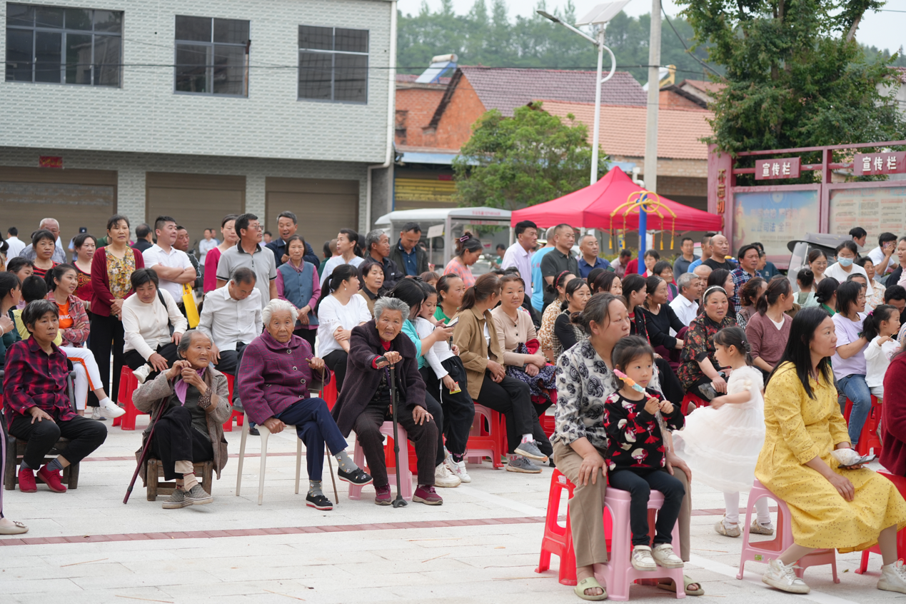 器乐演奏与特色节目彰显文化底蕴。古城畈社区张守成的笛子独奏《故乡的云》,清越笛声引得多位返乡游子轻声跟唱;戈富城、李红梅合唱《只要有你》时,让人不禁联想到抗洪抗疫期间干群携手画面,实现“艺术表达”与“集体记忆”的共鸣。