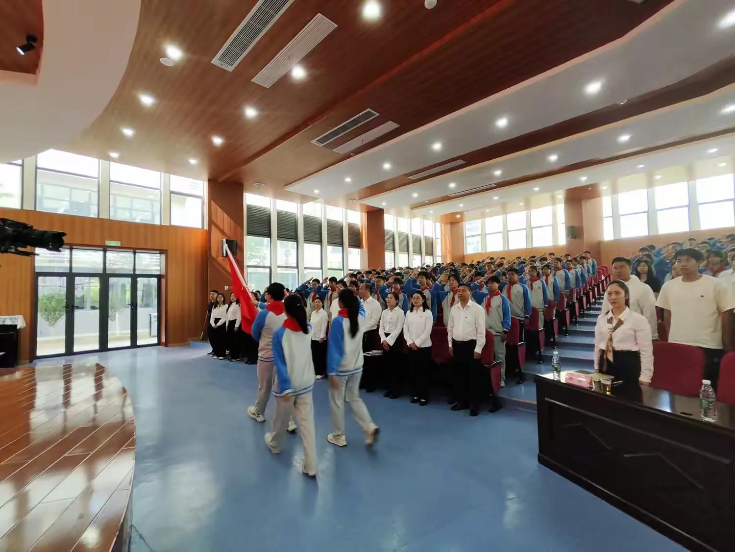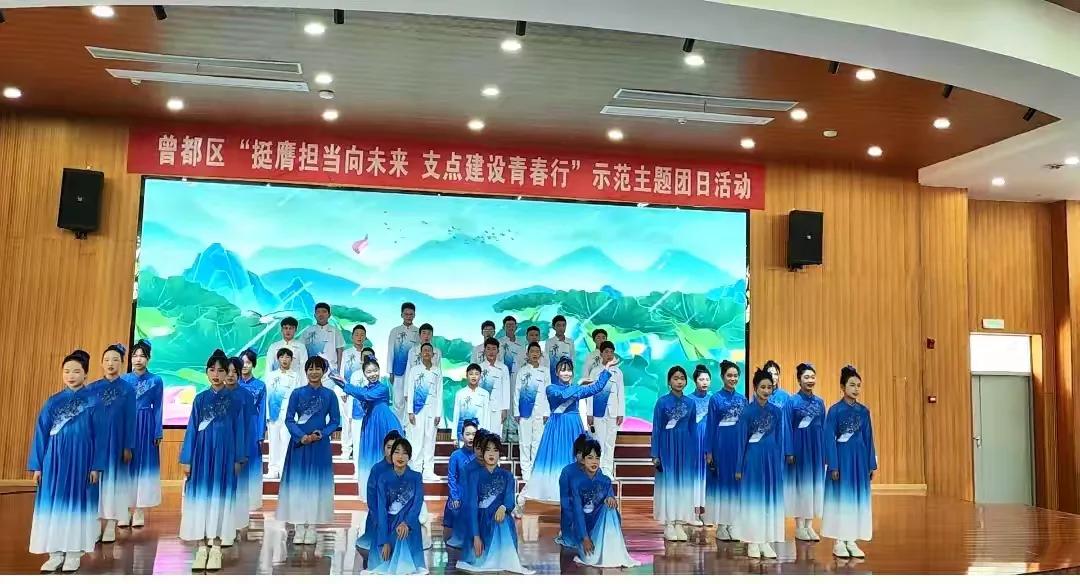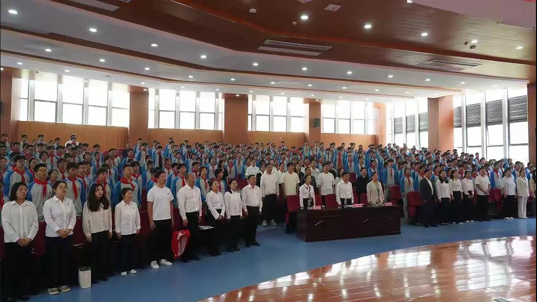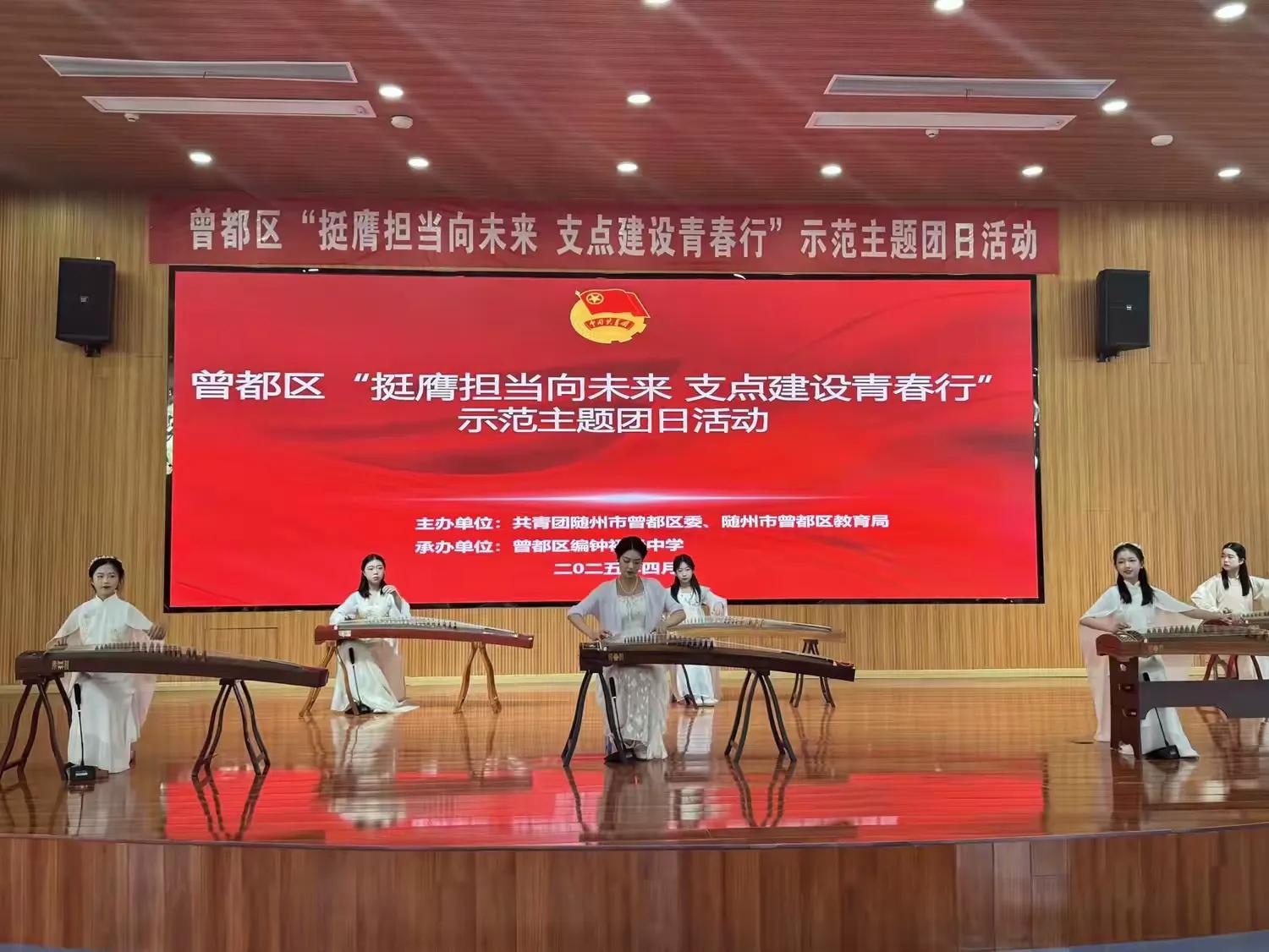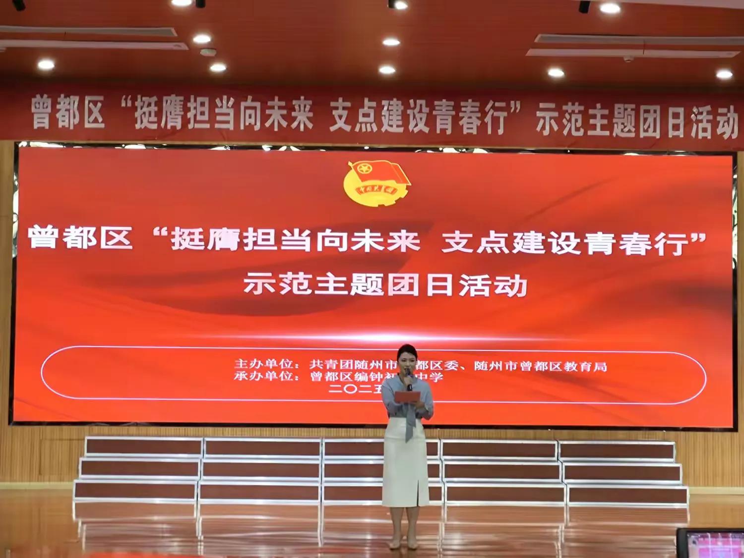 随州新闻网讯 为传承和弘扬 “五四精神”,激励广大青少年坚定不移听党话、跟党走。4月28日,曾都区“挺膺担当向未来 支点建设青春行”示范主题团日活动在编钟初级中学举行。区委组织部、区教育局、团区委、编钟初级中学等单位领导出席活动,全区中学(中职)学校团组织负责人、编钟初级中学新团员、优秀团员代表共计 200 余人参加活动。