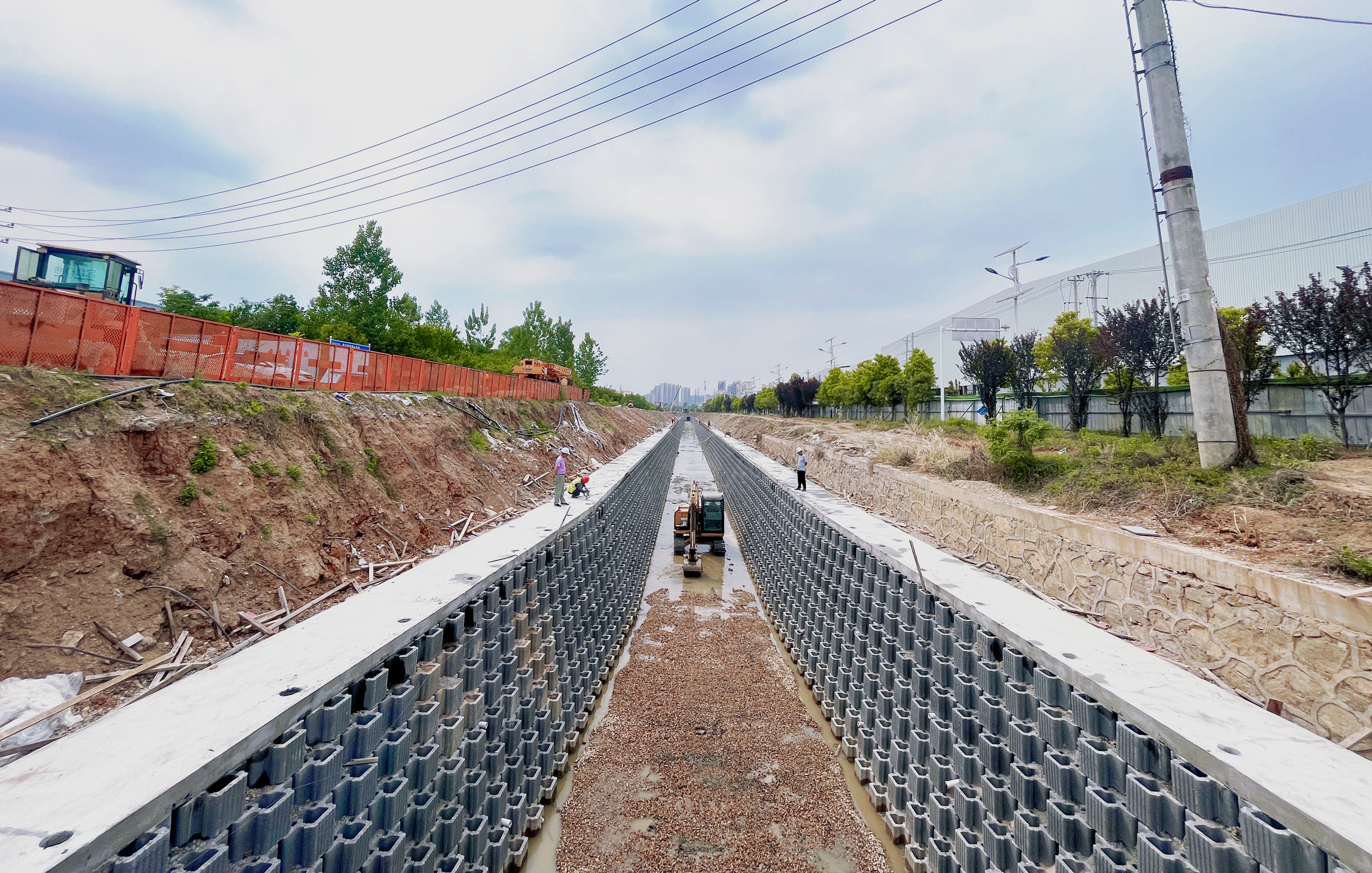 该项目建设倾注生态理念,两岸护坡挡墙采用植草式挡墙,后期栽植花草后,将进一步扮靓渠系环境,实现社会效益与生态效益相统一。