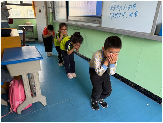 随着演练警报声骤然响起,防震演练正式拉开帷幕。第一次警报声中,正在上课的学生迅速做出反应,立即蹲在课桌下,用双手、书包或书本护住头部,紧闭双眼,做好就地避震措施。第二次警报响起,各班学生在老师的指挥下,快速组编成两队,按照既定的疏散路线,双手护头,有序撤离教室。低年级学生先行,同学们不推不挤,以最快速度向安全区域疏散。撤离完毕后,师生返回教室,班主任紧接着讲解防火灾疏散逃生要点,为防火演练做好知识衔接。
