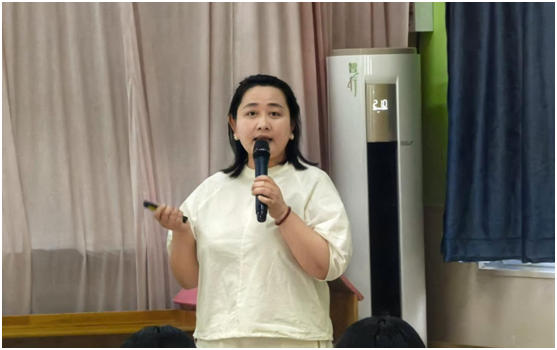 在大班组“慧准备 善衔接”专题讲座中,主持人邵海云老师在开场中强调:“幼小衔接不仅是知识储备,更是身心适应、生活自理、社会交往与学习品质的综合提升。”火箭班年级组长王艳红老师结合《幼儿园入学准备教育指导要点》,通过“看图猜词语”互动游戏,引导家长观察幼儿专注力发展特点,并以班级日常教学为例,讲解“身心准备”中扣扣子、系鞋带等精细动作训练,“生活准备”中时间观念培养,以及“学习准备”中阅读兴趣激发的实操方法,倡导家园共筑“有温度的衔接阶梯”。