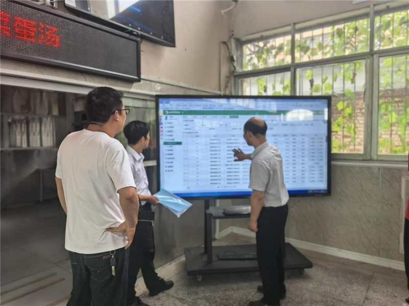 检查组一行首先深入学校食堂,实地查看食材存储情况,仔细翻阅相关台账资料,对“校园餐”的食品安全管理和资金使用进行严格核查。在“数字食堂”评估验收环节,详细查验监管平台运行状况,对食材溯源、价格公示等关键功能进行评估,对学校在数字化建设方面的成果予以肯定,也提出针对性改进建议。