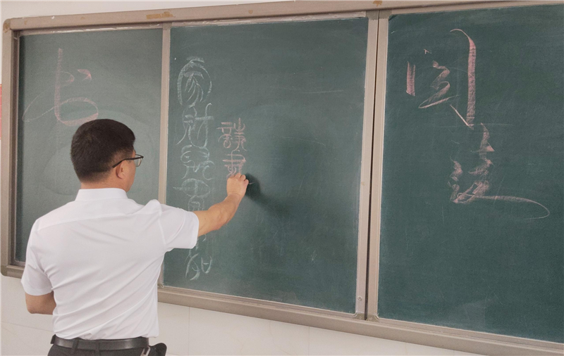 活动现场,该校校长代锋华即兴挥毫展示书法作品,笔走龙蛇间,或苍劲有力,或行云流水,以精湛书艺展现传统文化魅力,为全体教师树立文化传承标杆。在总结讲话中,代校长号召语文教师发挥主力军作用,推动阅读书写教育在全校落地生根,并鼓励青年教师向校书法协会会长张高原老师学习。