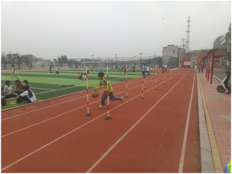 多元项目,全面发展。测试项目设置兼顾力量、耐力、灵敏与协调性。立定跳远:爆发力与技巧的结合,学生摆臂蹬地,奋力一跃;中长跑(男子1000米/女子800米):跑道上的坚持诠释拼搏精神;一分钟跳绳:翻飞的绳索考验节奏与体能;篮球绕杆运球:篮球小将们灵活变向,展现运动技能。