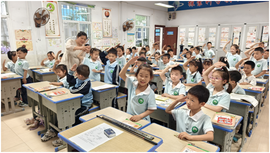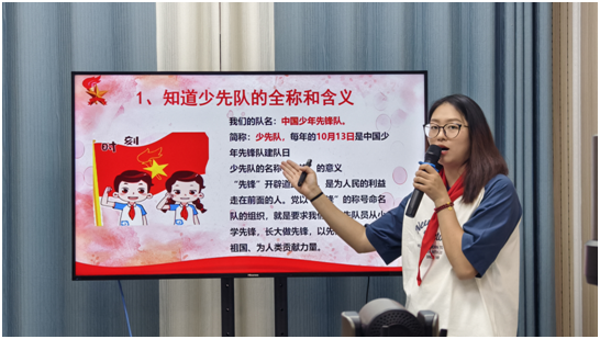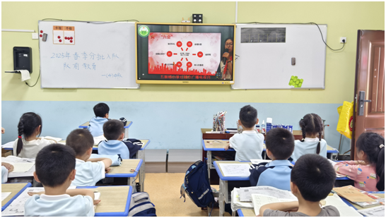 “少先队的队名是什么?”“少先队员的标志是什么?”在大队辅导员的引导下,预备队员们通过图文讲解、视频展播等形式,系统学习了“六知六会一做”的核心内容。“左尖压右尖,右尖转一圈……”辅导员和预备队员代表一起对规范佩戴红领巾进行了细致的讲解示范,教室里的辅导员耐心指导预备队员系红领巾、行队礼……预备队员们用稚嫩的声音呼号“准备着,为共产主义事业而奋斗!”“时刻准备着!”他们紧握右拳、眼神坚毅,充分彰显出新时代少年的责任担当。