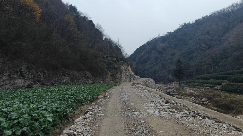 新修的路基从彭志苗家的菜地旁经过。新华社记者 陈诺 摄