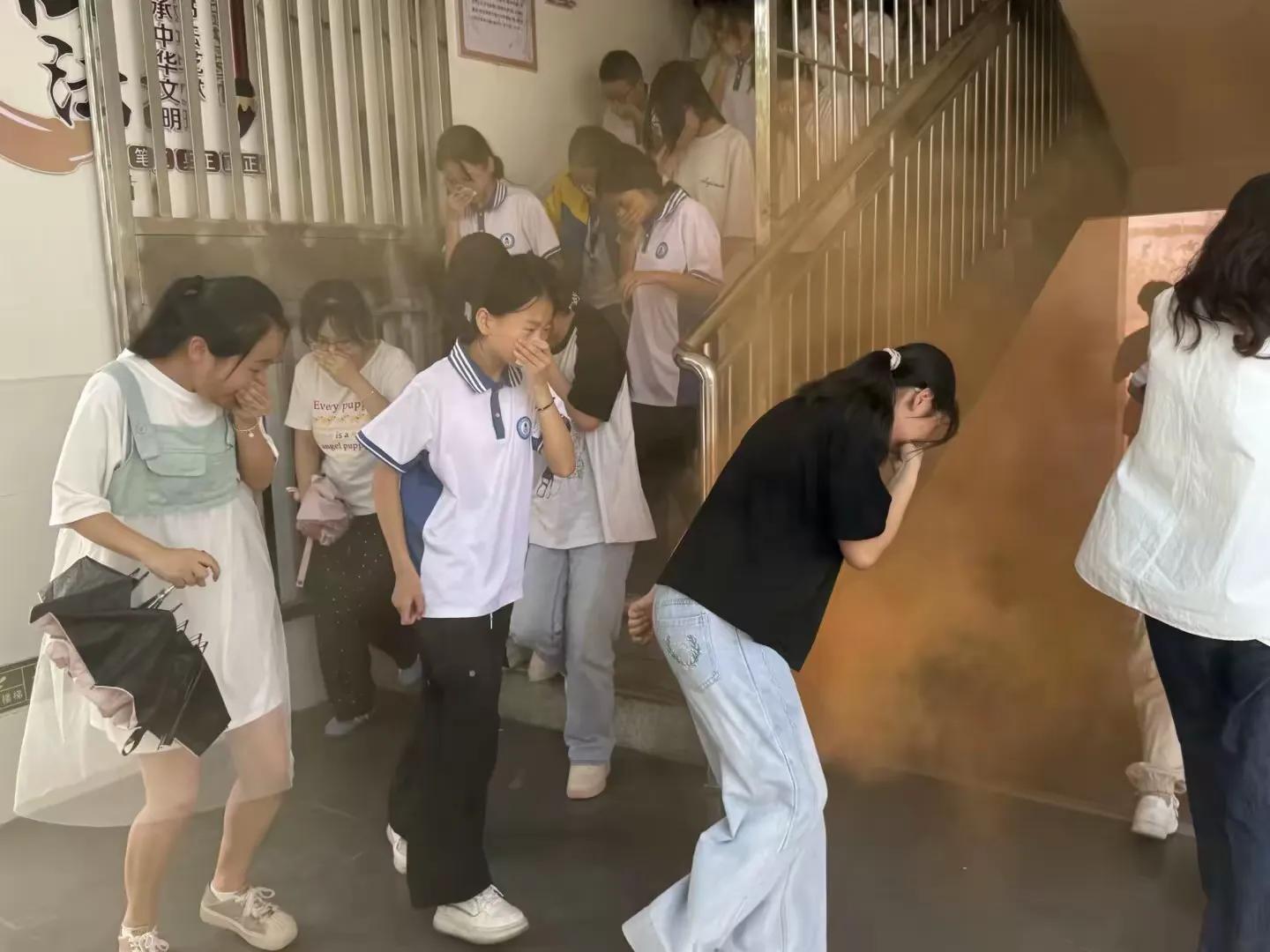 刺耳的警报骤然响起,各班学生闻令而动,迅速躲到课桌下避险。当“地震波” 模拟减弱后,全体学生按照 “快慢相生、就近而撤、避让成风” 原则,弯腰低姿、湿帕掩口鼻有序疏散至操场,所有楼层的班级都实现了 30 秒内科学错峰撤离。