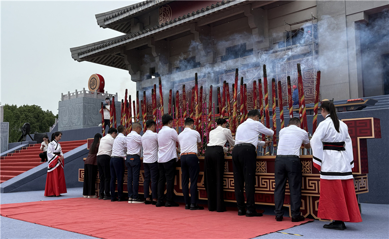 5月22日,烈山脚下,钟鼓悠扬。2025年“烈山问祖・侨聚随州”暨乙巳年海外侨胞故乡行活动在随州炎帝故里景区启幕。来自30多个国家和地区的100余名海外侨胞手持高香,在谒祖广场庄重列队,向华夏始祖炎帝神农虔诚鞠躬,开启一场跨越山海的寻根之旅。