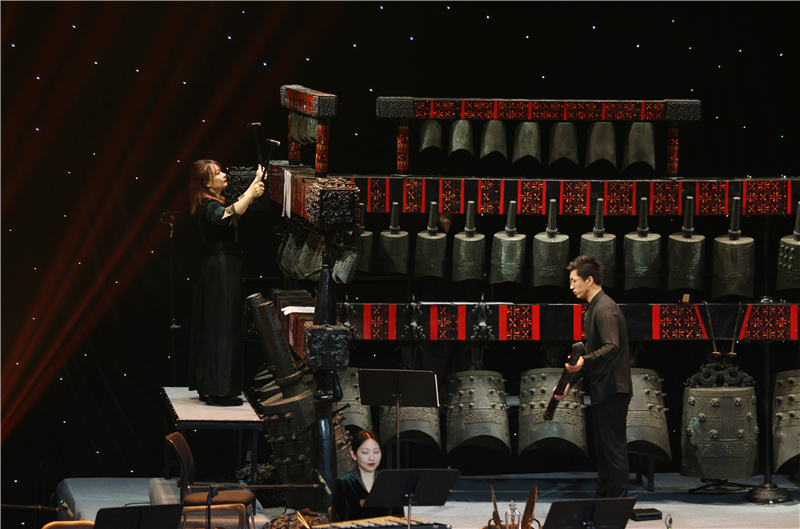 编钟与民族管弦乐的融合是本场音乐会的一大亮点。《玄鸟》将编钟那古朴神秘的音色与民族管弦乐交织,营造出神秘悠远的意境,仿佛带领听众穿越时空,探寻古老的文化意象。《荆楚小调》巧妙融合荆楚地区音乐风格,编钟与管弦乐相互配合,生动展现荆楚大地的独特风情。当编钟与管弦乐共同奏响《我的祖国》,历史的厚重感与家国的庄严感扑面而来,每一个音符都凝聚着对祖国山河的热爱。