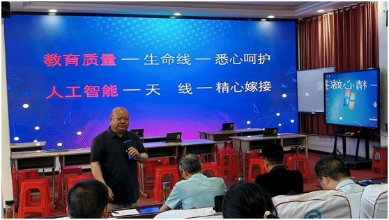 随县继教中心书记王成义为本次活动做总结。王成义表示: 上午的示范课堂,将信息技术与教学融合,让教学展露出了新风采,为学生打开了在线学习新视野,引领学生适应信息化时代学习新趋势。学生亲身体验到在线学习的便捷与高效,激发对信息技术助力学习的兴趣。此次送教培训为教师们提供新思路、新方法,有力推动了区域教育信息化发展。希望老师们勇立潮头,主动迎接挑战,推动教学的创新与实践。