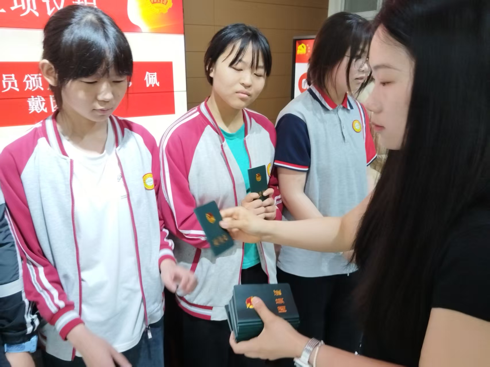 团总支书记刘梦姮宣读了新团员名单,40名同学经过团课学习、考核及民主评议,正式加入中国共产主义青年团。随后,为新团员颁发团员证。团员证映照青春脸庞,象征着责任与使命的传递。