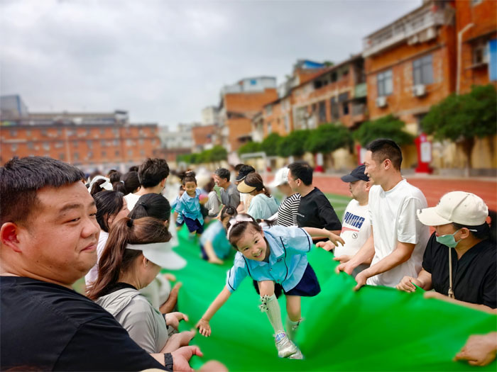 小哪吒们乘着龙舟,踏浪前行,踩着魔毯“横渡东海”;家长们高举“火焰球”,活力全开。在闯关游戏中孩子们学会了勇敢尝试,齐心协力,每一步都是勇气的绽放,每一声欢呼都是团结的力量。