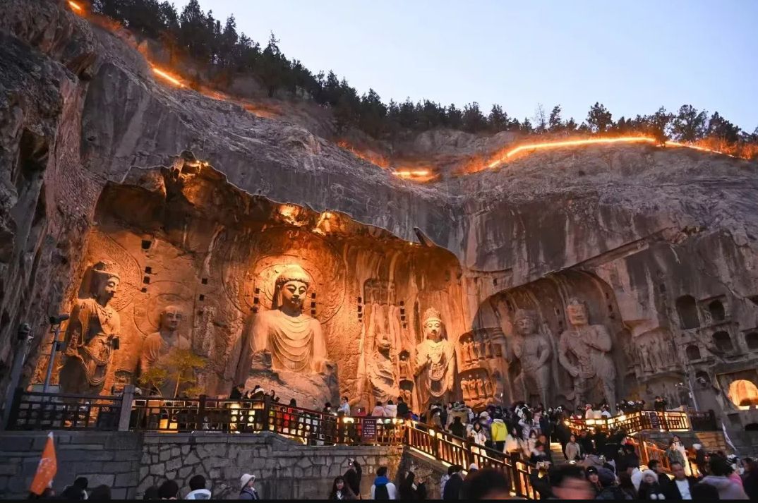 5月19日,洛阳龙门石窟前,熙熙攘攘的游客纷纷欣喜地向总书记问好。伴着笑声,总书记亲切地对大家说:“都是慕名而来啊!中华文明博大精深,值得我们多到实地去寻溯。”