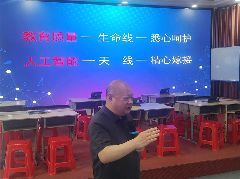 随后,随县继教中心主任苏明东以“锚定方向,协同共进”为主题发表讲话。他深入解读了国家人工智能教育政策,指出“AI与学科融合不是选择题,而是必答题”,并呼吁各校分管校长扛起技术赋能教育的责任。