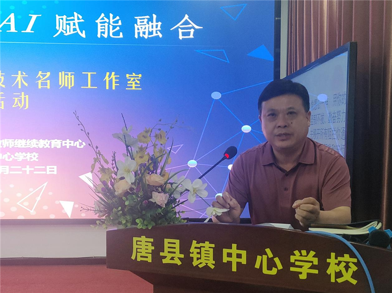 活动伊始,唐县镇中心学校校长吴小林在开班仪式上发表热情致辞。他代表学校对送教团队和参训教师表示热烈欢迎。他说:“本次培训是城乡教育资源共享的生动实践,唐县镇将以此次活动为契机,打造智慧教育示范窗口,为乡村学生插上AI时代的翅膀。”吴校长还特别提到,学校将全力保障培训落地,推动“技术赋能课堂”从理念走向实践,为教育均衡发展注入活力。