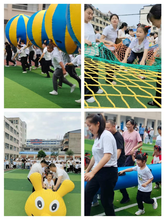 随后的亲子游戏将气氛推向高潮,老师们精心策划的“龙舟破浪”“火焰球出击”“魔仙大战”等游戏妙趣横生。萌娃们斗志昂扬,全身心投入,与家长紧密协作,尽显亲子间的默契。现场加油声、喝彩声、欢笑声此起彼伏,整个操场变成了欢乐的海洋。