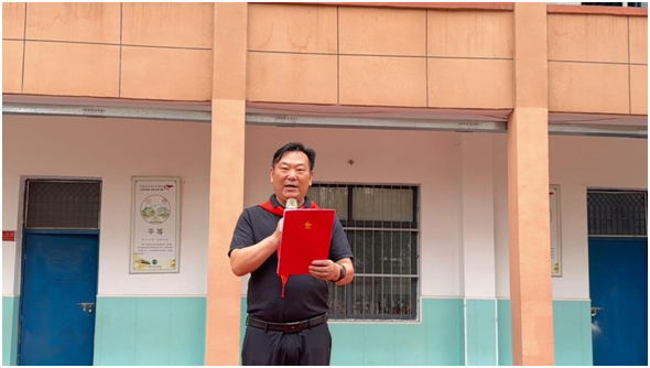 学校支部书记、校长、少工委主任谌江波为新建中队授旗,相关负责人为新聘中队辅导员颁发聘书。旗帜飘扬,聘书传递,象征着新的责任与使命交接。校长的寄语语重心长,他希望新队员传承红色基因,以少先队员的标准严格要求自己,努力成长为新时代的栋梁之材。最后,在大队辅导员贾思蕊的领呼下,全体少先队员高呼“时刻准备着”,坚定的呼号声展现出新时代少年昂扬向上的精神风貌。