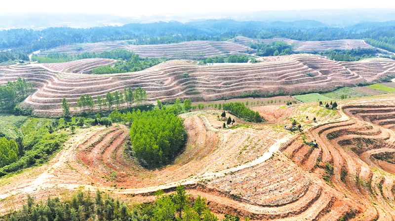 殷张山村,新栽种的油茶树整齐排列,让曾经荒芜沉寂的山坡重焕生机。