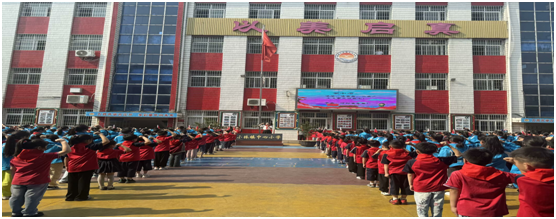 仪式上,大队委为一年级4个中队授中队旗,背景音乐《星星火炬代代相传》奏响,象征着少先队精神的代代延续。薛迎春校长在讲话中勉励全体队员牢记党的嘱托,争做有理想、有本领、有担当的新时代好少年。活动最后,全体队员在呼号声中庄严回应:“时刻准备着!”随着退旗曲响起,仪式在肃穆的敬礼中圆满落幕。