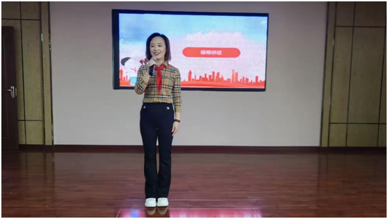 分管政教刘丽校长勉励全体队员:"要传承红色基因,从小树立强国志向,努力成长为能够担当民族复兴大任的强国少年。"