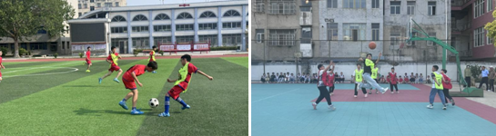 当日下午,篮球场和足球场上演了活力四射的社团展演赛。小运动员们运球如飞、配合默契,挥洒汗水,展现了蓬勃朝气与拼搏进取的团队精神,赢得了阵阵喝彩。