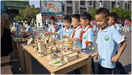 科技、手工制作展区里,孩子们自主设计的智能小车、航天模型等科技作品轮番亮相,将创意与科学实践巧妙结合。孩子们化身小小科学家、发明家,用天马行空的想象、灵巧的双手,将废旧材料、日常物品赋予新的生命,创造出一件件令人惊叹的作品。每一件展品都凝聚着智慧的光芒,每一个创意都承载着探索的渴望。期待这群小小“科学家”继续以好奇为笔、以实践为墨,在更广阔的科学天地中书写属于自己的精彩篇章!