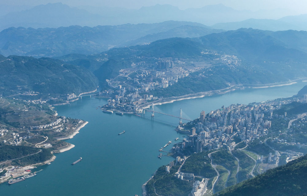 2025年4月28日,船舶行驶在湖北省恩施州巴东县巫峡口(无人机照片)。新华社记者 杜子璇 摄