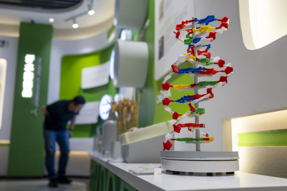 2025年4月21日,参观人员在湖北武汉禾元生物科技股份有限公司展厅参观。新华社记者 伍志尊 摄