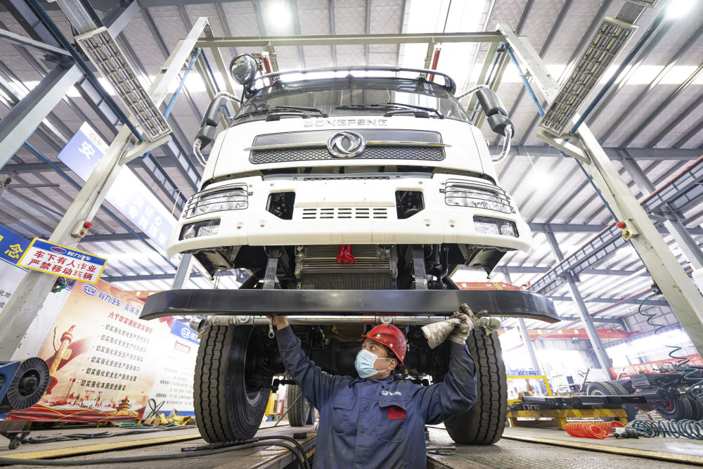 2025年2月13日,工人在位于湖北随州的程力专用汽车股份有限公司生产线上作业。新华社记者 肖艺九 摄
