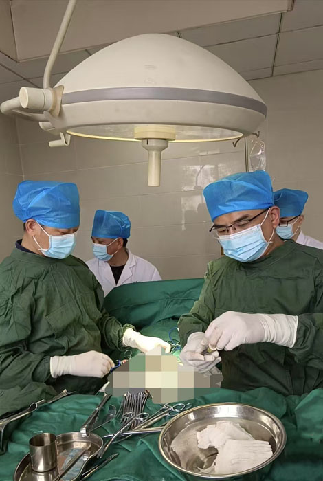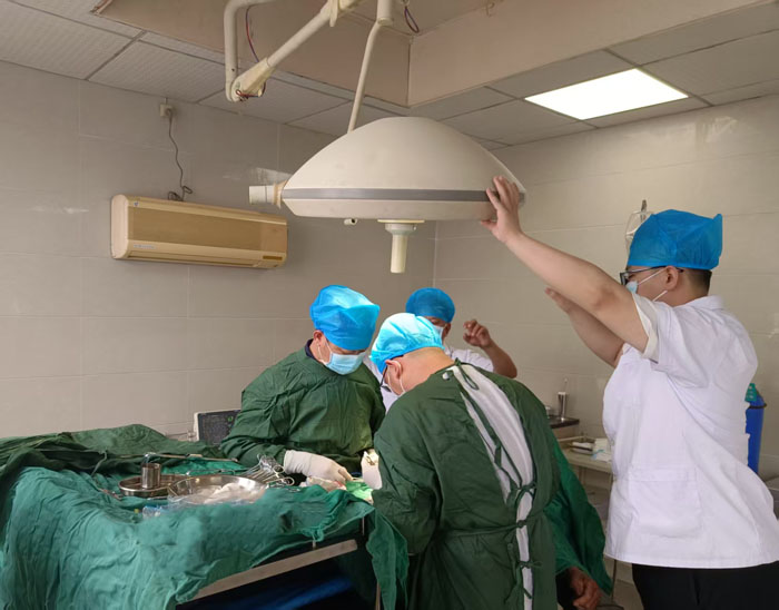 曾都医院高度重视,院党委委员、疝疾病诊疗中心、肝胆脾胰甲乳外科聂明主任,麻醉科胡林主任迅速响应,立即组建由医学硕士、疝疾病诊疗中心、肝胆脾胰甲乳外科副主任胡竞峥及麻醉科陈龙医师组成的专家团队,赶赴何店镇中心卫生院。胡竞峥副主任在疝病诊疗领域经验丰富,陈龙医师在高龄患者麻醉管理方面技术精湛。两位专家放弃休息时间,抵达后第一时间开展工作,通过多学科会诊制定个性化手术方案,术中精准操作、严密监护,术后给予专业康复指导,全程与基层医疗团队密切配合,最终成功完成手术,帮助患者摆脱病痛。