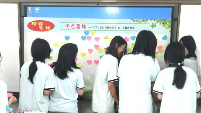 优点轰炸墙:用积极关注重建自我认知。 积极心理学之父塞利格曼强调,"发现优势比修补缺陷更重要"。他人视角的积极反馈,能打破青少年常见的"自我否定偏差"。 我最欣赏你:很有感染力的微笑;我最欣赏你:对事情积极乐观的心态;……,这些温暖的语言都是照亮心灵的"微光",最终汇聚成属于集体的"银河"。