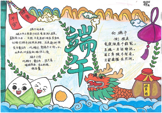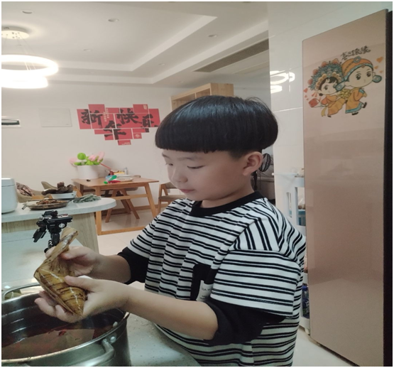 端午假期,亲子包粽子活动温馨上演。粽叶与糯米在家长和孩子的巧手中变成一个个粽子,传统手艺在指尖传承,亲子温情也在互动中流淌。与此同时,一二年级学生身着汉服、佩戴香囊,用清脆的童谣演绎端午韵味;三四五年级学生拿起画笔,在A4纸上创作端午手抄报,将历史故事、民俗风情等融入其中,诠释自己对端午的独特理解。