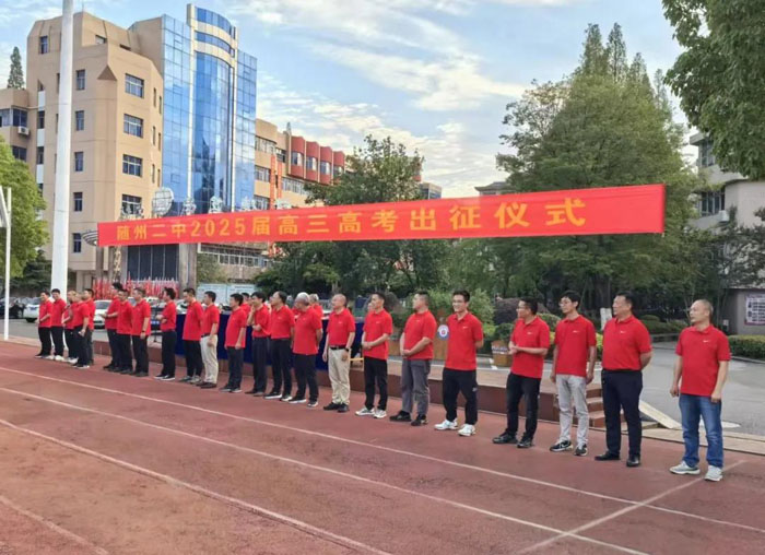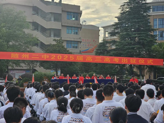 随州新闻网讯 (通讯员王波、张琳)十年寒窗磨一剑,今朝出鞘试锋芒。6月3日下午,随州二中2025届高三高考出征仪式在运动场举行,高三年级全体教师为即将奔赴考场的战士们擂响战鼓、壮行助威。党委书记马立学,党委副书记、校长肖繁荣等校领导出席仪式。