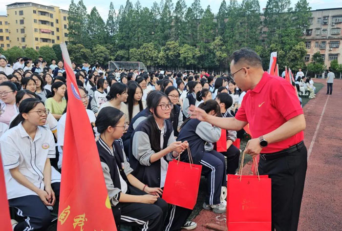 马立学、肖繁荣为高三每位考生分发德芙巧克力,巧克力包含了满满的祝福,希望同学们考场上做题顺滑流畅,甜美的口味也意味着学生们在备考过程中所付出的努力能够得到回报,最终金榜题名。