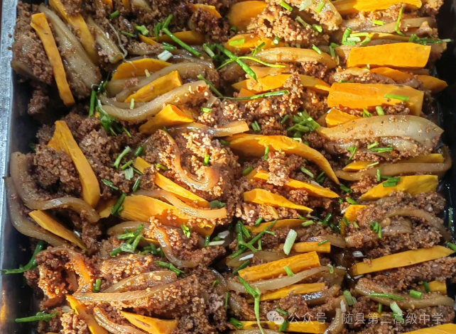娃娃菜的清甜,青椒炒瘦肉的鲜辣,为奔赴考场的学子们补充满满的能量。“牛”肉炒“葱”,预祝学子考场夺魁所向披靡,“牛”气冲冲;米粉“蒸”肉,预祝学子日上“蒸蒸”,金榜题名;新鲜菜蔬,色香味美,悦目又爽口。
