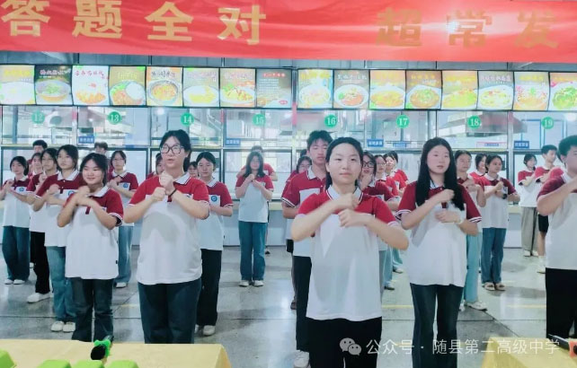 随州新闻网讯 (通讯员陈翠维)当石榴花烧红了天际,木槿在风中扬起粉红的战旗,学校也迎来了高考季。6月4日晚,随县二中的学生餐厅灯火通明——学校特意为即将奔赴考场的高三学子准备了高考壮行晚宴,用心的准备,是真诚的祝福,是满满的心意。