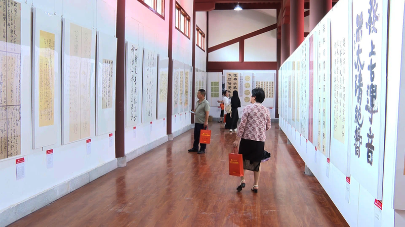 走进炎帝故里景区思贤阁,“炎帝故里翰墨情”书法艺术展的展厅内气氛庄重而热烈。60幅出自全国书法名家之手的精品力作有序陈列,篆、隶、楷、行、草各体兼备。观众们或是驻足凝视,或是轻声交流,沉浸在书法艺术与炎帝文化交融的独特韵味中。