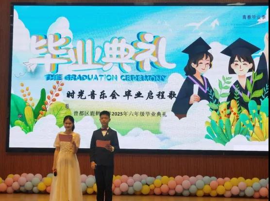 典礼伊始,全体毕业生以一首《像你这样的朋友》点燃全场。一曲唱罢,六年级成长纪录片随之播放,荧幕上的每一帧画面,都是孩子们成长的印记,从稚嫩孩童到翩翩少年,时光在此定格。千言万语,诉不尽殷殷期盼,校领导回溯往昔,从晨读时的书声琅琅到赛场上的奋力拼搏,桩桩件件皆是成长印记。以歌曲为喻,勉励孩子们勇于挑战,在人生的舞台奏响属于自己的独特旋律。母校永远是温暖的港湾,期待学子常归,共赴星河万里,续写青春华章。