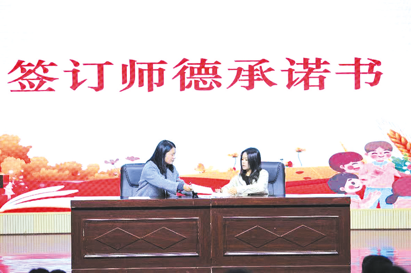 涵养师德师风,增强育人使命感。学校持续加强教师队伍管理、师德师风建设,全面提升教师师德水平。扎实开展师德师风观影、演讲等教育活动,与每位教师签订《师德师风承诺书》,严格师德管理。倡导“我与手机有个约定”,全方位寻访身边好老师等专项工作,努力培育教师职业道德。努力营造积极健康、风清气正的育人氛围。开展师德师风培训并签订师德承诺书